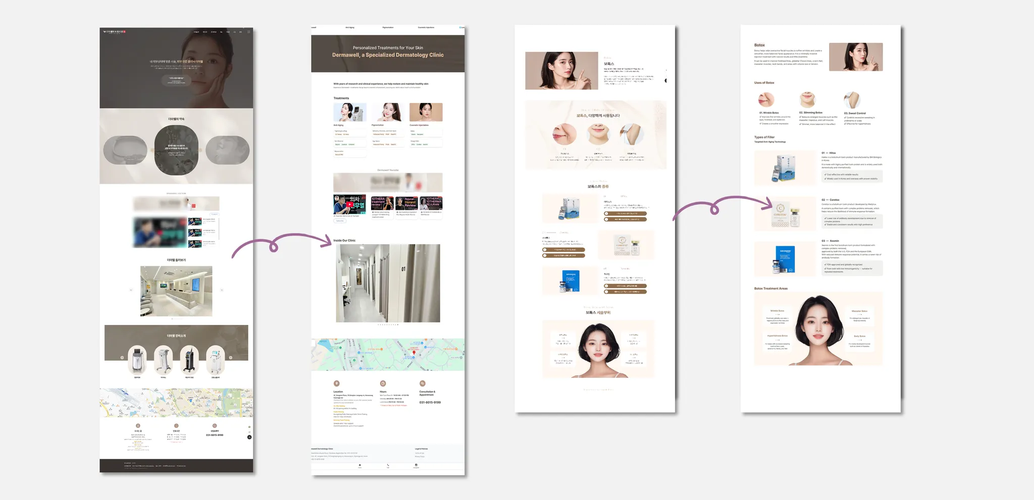 피부과를 대상으로 기존에 운영 중이던 국문 사이트를 기반으로 노션을 활용해 영문 웹사이트를 새롭게 구현했습니다.