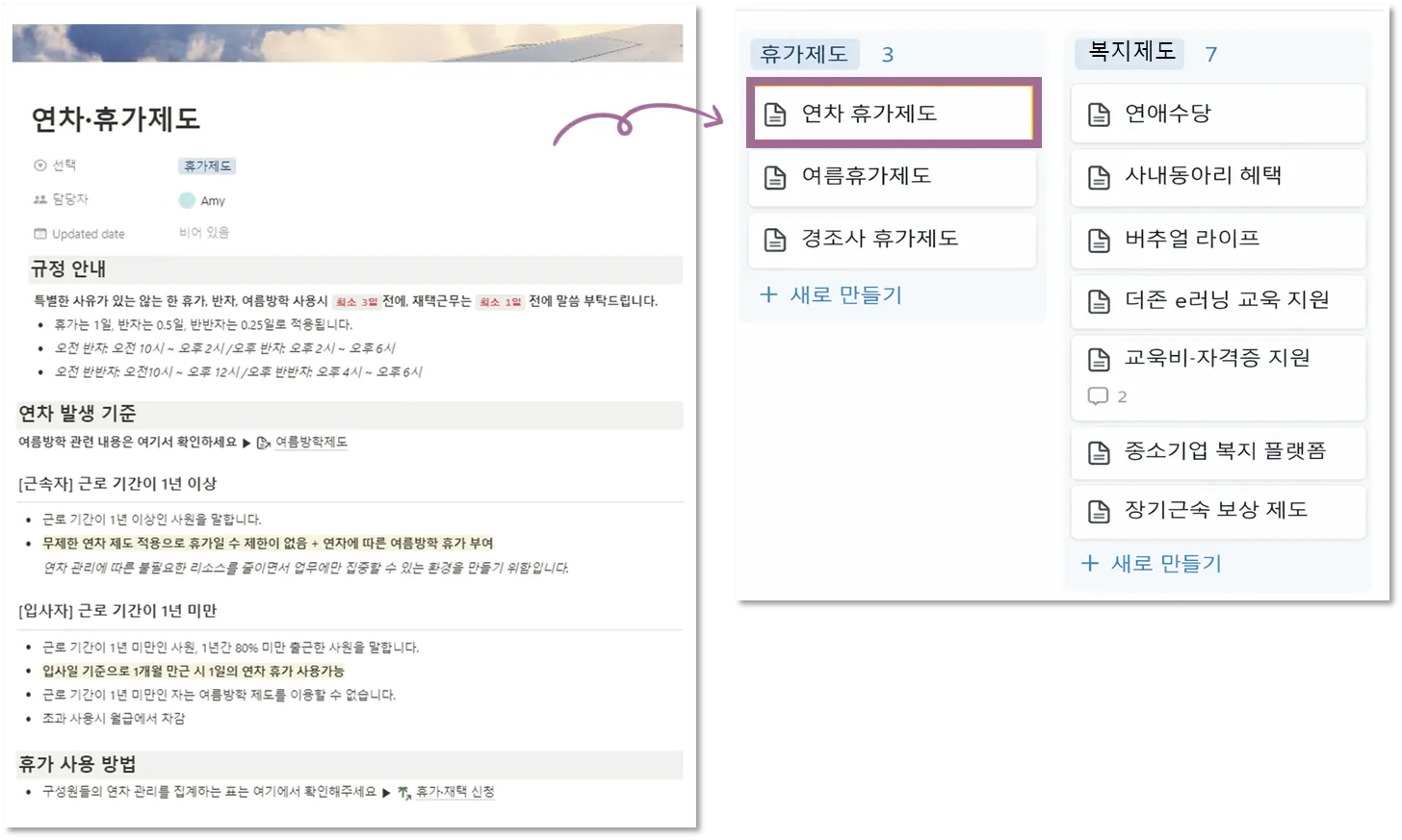 그래서 모든 멤버가 접근하는 공통 페이지에 연차와 휴가 제도에 대해 최대한 자세히 정리해두었습니다.