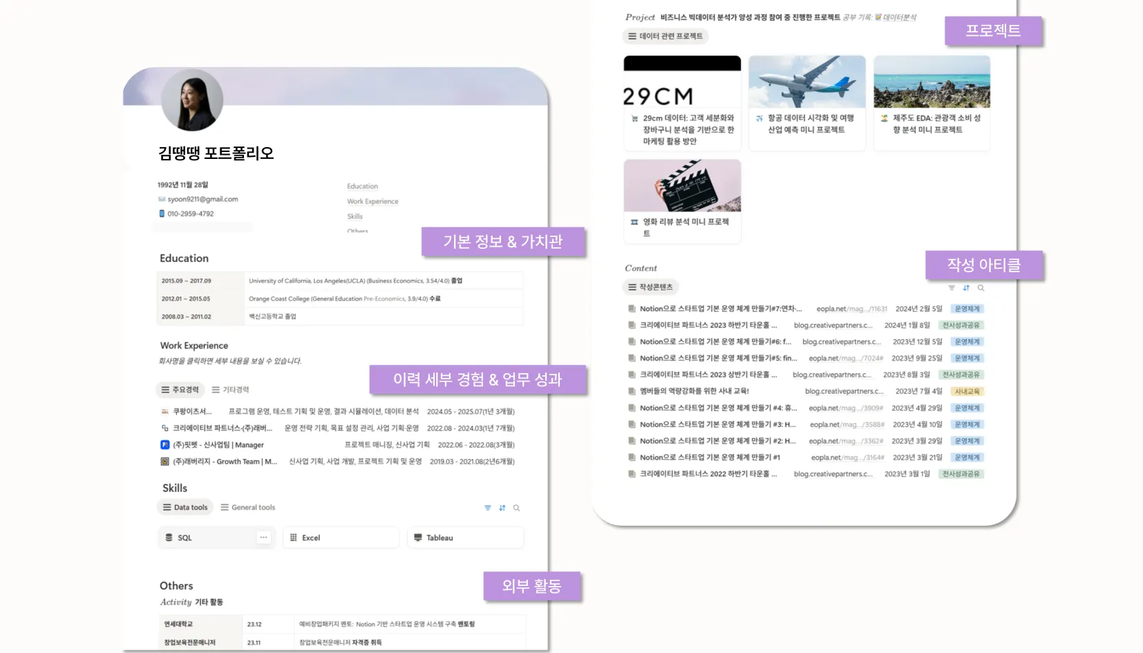 그래서 포트폴리오 역시 특정 직무 기술을 나열하기보다는, 전사 관점에서 문제를 이해하고 구조적으로 풀어온 사람이라는 맥락이 드러나도록 설계했어요.