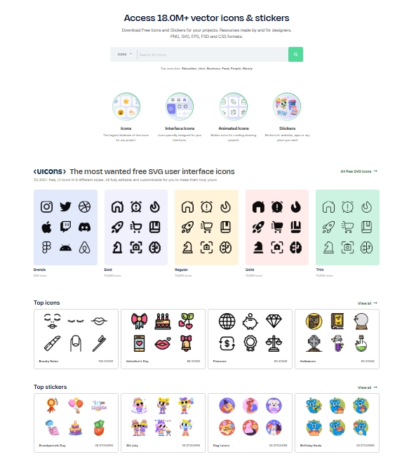 정말 다양한 아이콘과 스티커가 있으니 확인해보세요! 매일 10개씩 무료로 다운로드 받을 수 있어요