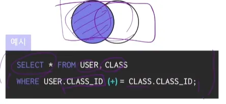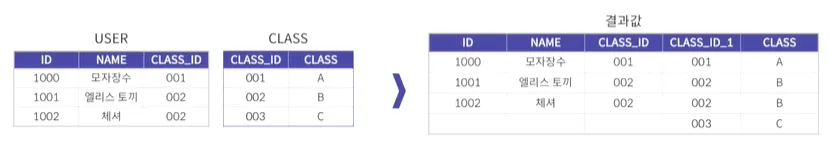 두 개의 테이블 간에 교집합을 조회하고 한쪽 테이블에만 있는 데이터도 포함시켜서 조회