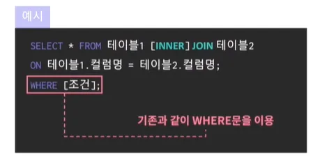 join을 활용한 쿼리에서도 where문을 이용하여 조건을 걸 수 있음