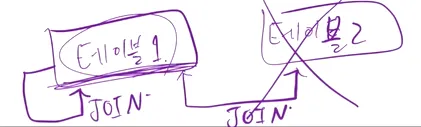 기존에는 테이블 1,2에대한 join을 했었는데 이제는 테이블 1이 자기 자신을 조인 함