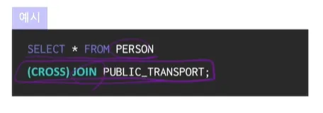Cross join도 'cross'를 생략할 수 있음. inner join도 생략 가능한데 이너조인은 'on'조건절나 using을 필수적으로 사용해야하는데, 그 두개가 없으면 자동적으로 'cross join'으로 인식