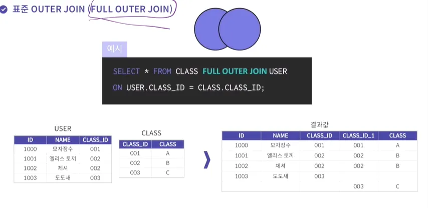 표준 outer join(full outer join)
