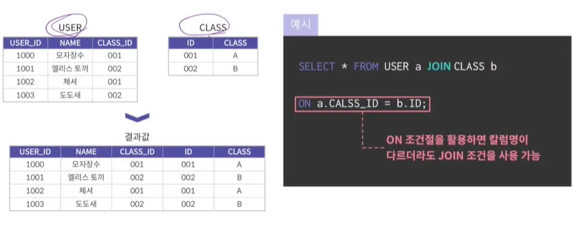 → 굳이 테이블 1의 컬럼명, 테이블2의 컬럼명을 적어줄 필요 없음