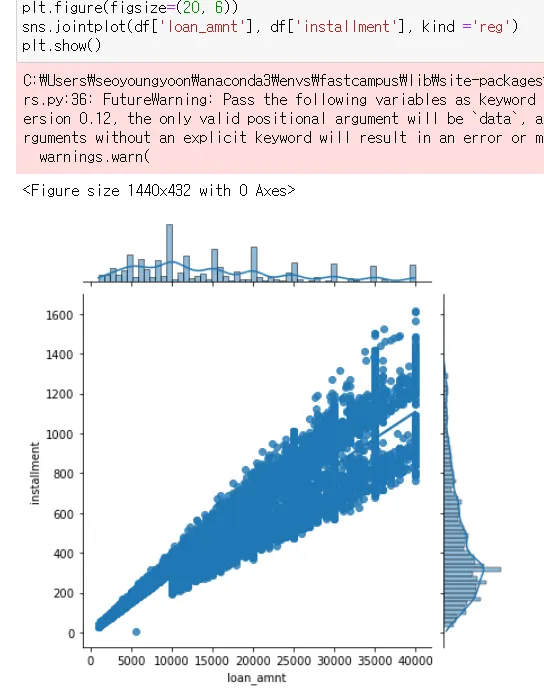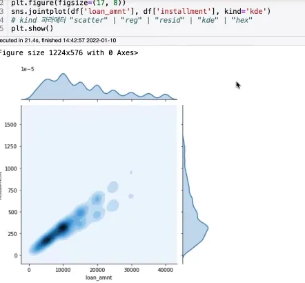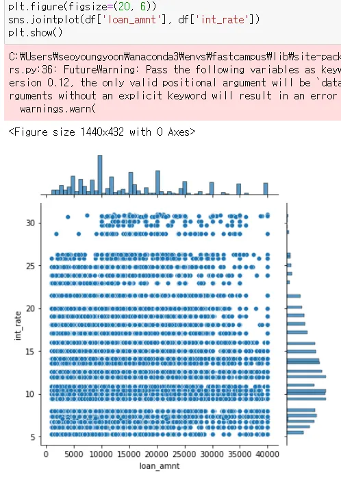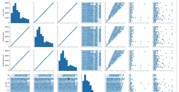 → int_rate, loan_amnt에 대한 분포도와 scatter plot을 한번에 볼 수 있음