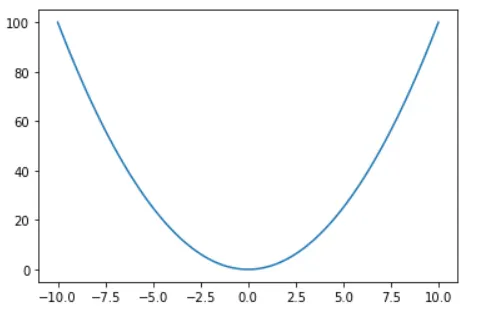 x1 = np.linspace(-10, 10, 100), y1 = x1^2