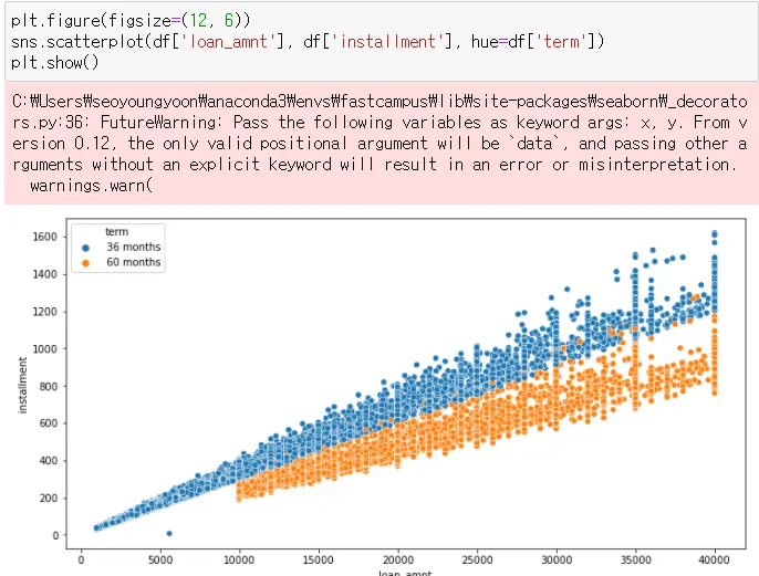 → term이 짧을수록 installment도 적은 특성을 보임