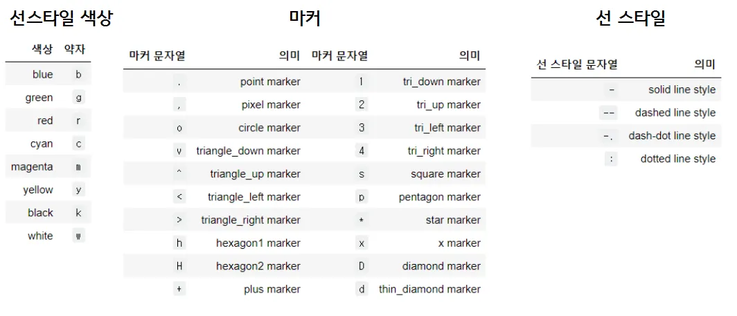 plt.plot(x1, y1, 'ro:') 색상, 마커, 선 스타일 순서대로 적용