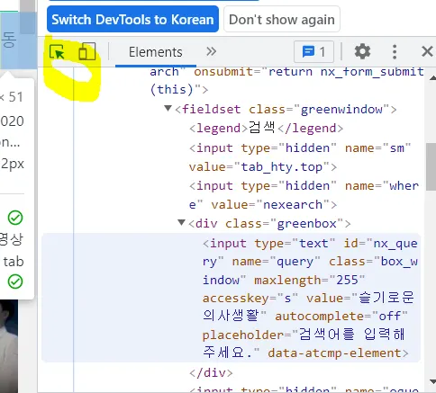 (2) 해당 부분을 드래그해서 → 검사 클릭