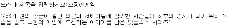 keyword = input('드라마 제목을 입력하세요:')