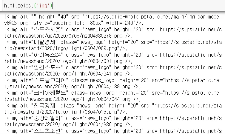 html.select(’img’) 이미지만 확인