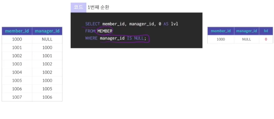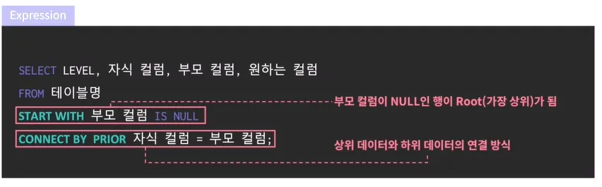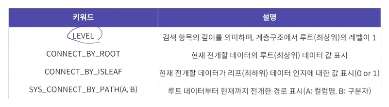 테이블에 계층열 데이터가 존재하는 경우 데이터를 조회하기 위해 사용하는 것