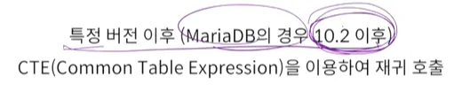 오라클에서는 start with 이었던 것을 maria db에서는 'where'로 표현