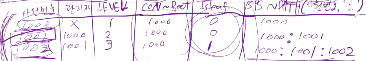 Connect_by_isleaf: 현재 전개할 데이터가 최사위 데이터인지 0과 1로 표시