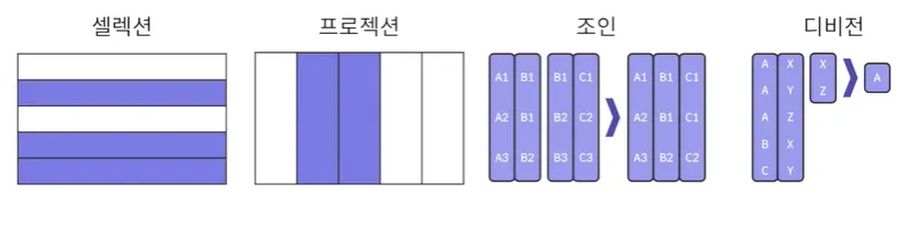 관계형 데이터베이스에서 원하는 정보를 유도하기 위한 기본 연산 집합