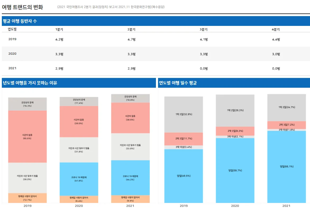 그러나 2021년은 2020년과 비교했을 때 전반적으로 여행객 증감율이 점차 회복하고 있는 것으로 보임