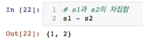 차집합: 집합1 - 집합2