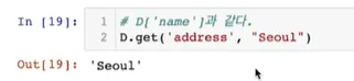 key값이 없는 경우: address가 key값으로 없기 때문에 seoul 출력