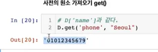 사전의 원소 가져오기 → D.get( )