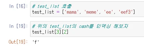 4번째 인덱스 ‘eef’에서 3번째 인덱스 값을 가져옴