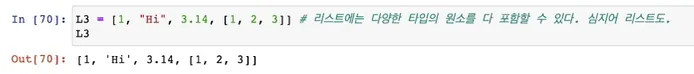 리스트에는 다양한 타입의 원소를 포함할 수 있음