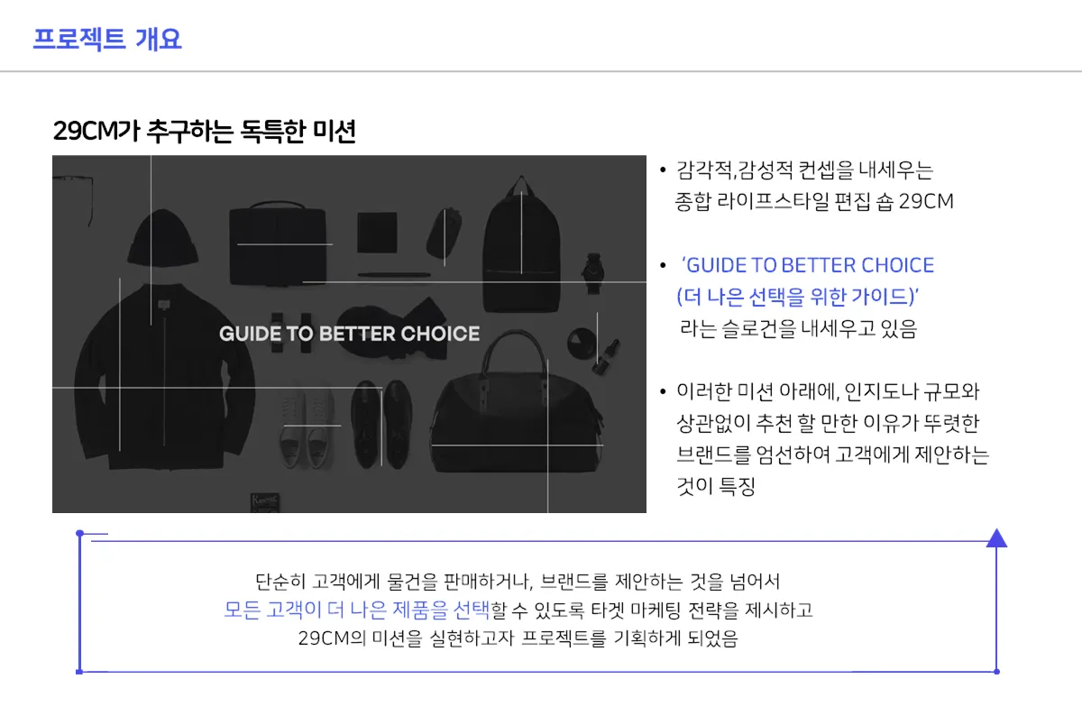 29CM의 미션을 실현하고자 해당 프로젝트를 기획함