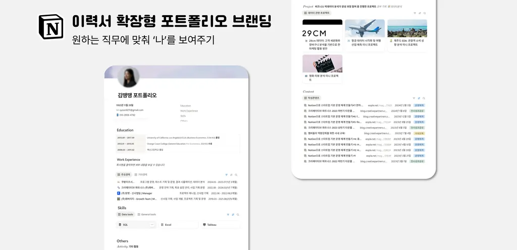 이력서는 “사실 위주”로 브랜딩 페이지는 “나를 세일즈 하는 용도”로 회사에 나를 제안하는 보조자료로 활용할 수 있어요.