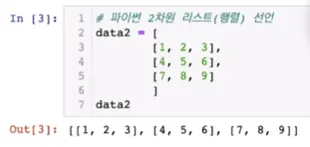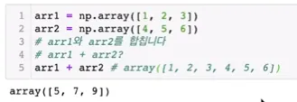 python list와 비슷한 개념을 numpy에서는 numpy array라고 부름