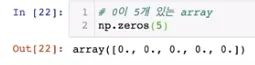 생성하기: arr2= np.array(data) → arr2 = np.array([1,2,3,4,5]) 동일