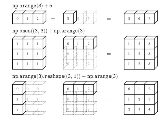 서로 크기가 다른 numpy array를 연산할 때, 자동으로 연산을 전파(broadcast)해주는 기능