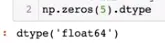 타입확인 : arr2.dtype = int 64 → 원소의 타입 integer + 64 bits