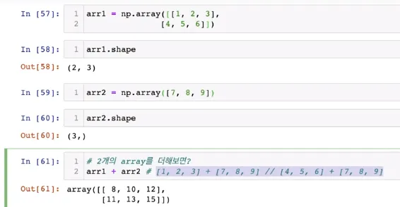 numpy array를 쓰는 가장 큰 이유는 vector처럼 사용할 수 있기 때문