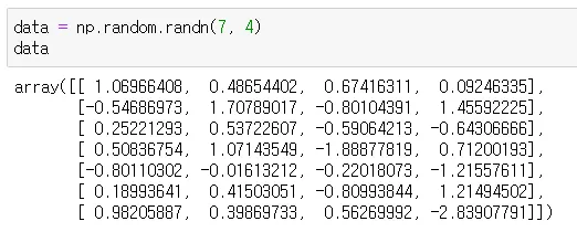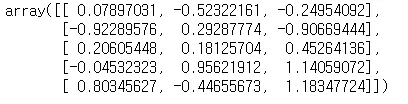 np.random.randn(5,3) → random sampling을 한 원소를 가지는 5x3행렬을 만든다