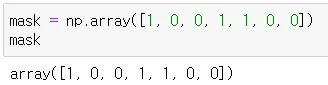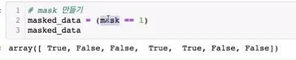 위의 절차를 생략하고, data[mask == 1, :] 로 바로 생성 가능 → fancy indexing