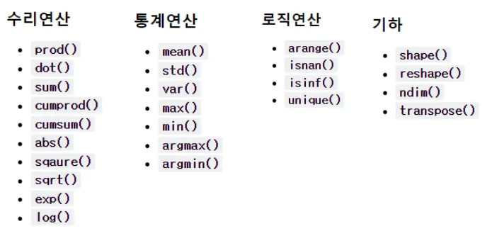 → 파이썬 리스트처럼 여러 데이터를 한번에 다룰 수 있으나, 모든 데이터가 동일한 data type을 가져야합니다.