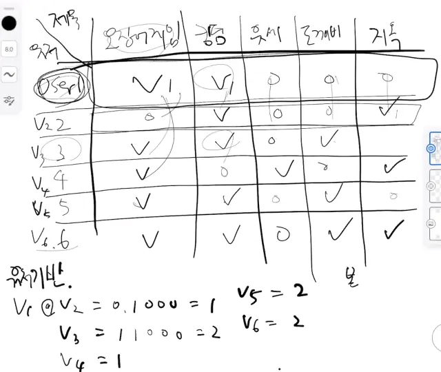 → 내적의 크기가 클 수록 v1과 취향이 겹침
