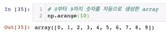 numpy array를 만들기 → 파이썬 list를 numpy로 변환하는 것