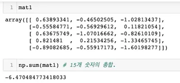 np.sum(mat1) → 모든 원소를 다 더한 값
