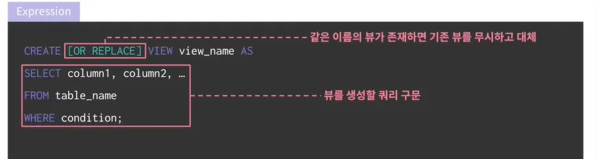 table의 경우는 update가 가능했는데 view는 재생성해야함