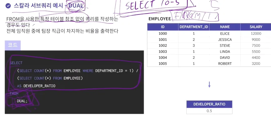 스칼라 서브쿼리 예시 - DUAL
