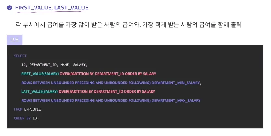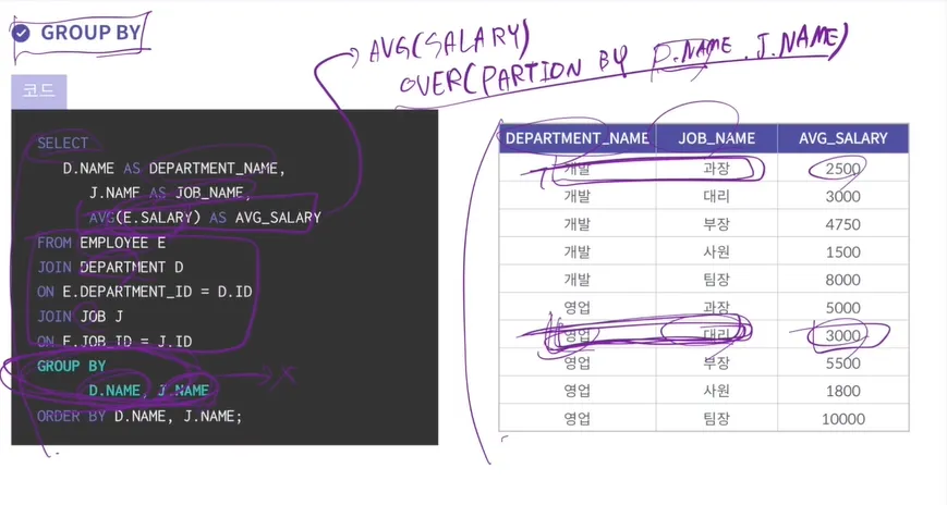 GROUP BY로 쓸 수도 있고 PARTITION BY로 할 수도 있는데 실무에선 GROUP BY를 더 많이씀