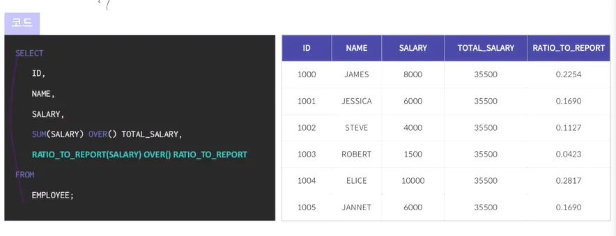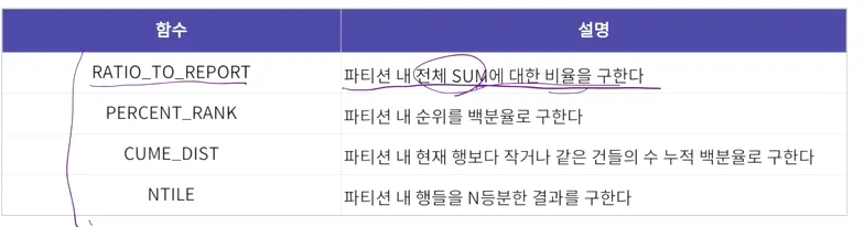 윈도우 함수 - 그룹 내 비율 함수