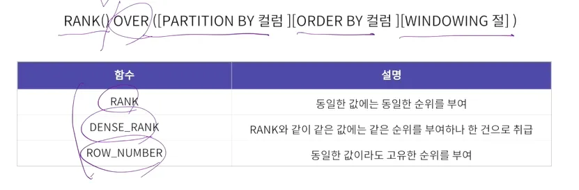 윈도우 함수 - 순위 함수
