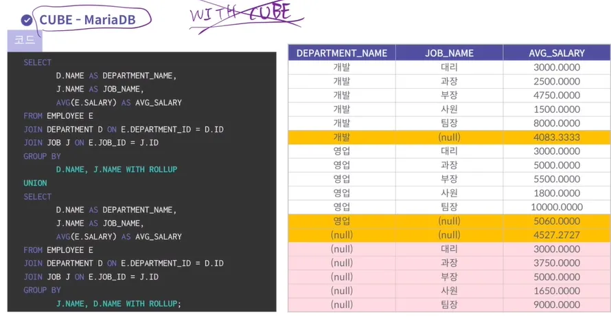 CUBE → WITH ROLL UP, 2개 UNION